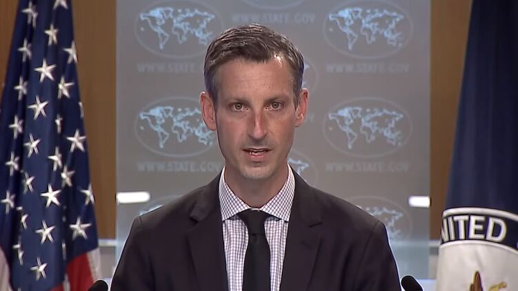 Представитель госдепартамента США Нед Прайс в ходе брифинга. Скриншот с видео