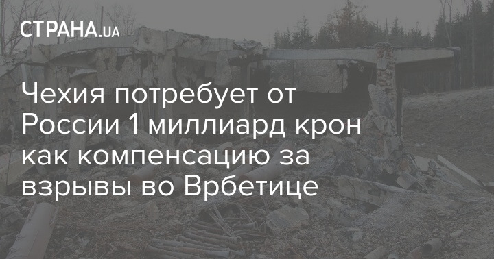 Чехия намерена потребовать от России компенсацию за взрывы на складах боеприпасов в деревне Врбетице в 2014 году. Сумма запрашиваемой компенсации может составить минимум 1 миллиард крон (около 47,5 млн долларов или 1,3 млрд грн по курсу - Ред.).