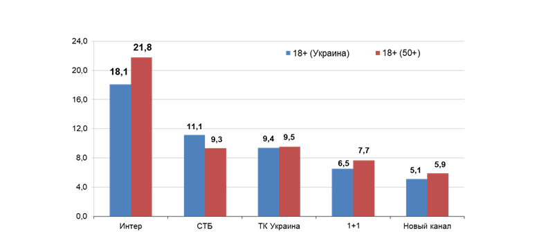 Кинофильм Леонида Быкова "В бой идут одни "старики" также стал лидером в своем праймовом слоте среди зрителей 18+ и в Украине, и в крупных городах. Его доля по этой аудитории составила 14,1% в Украине и 14,8% в городах 50 тыс.+.