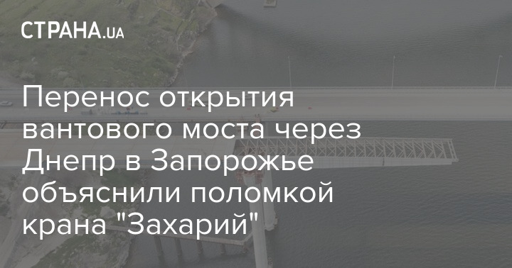 В частности, отложить открытие пришлось из-за повреждения плавкрана "Захарий", который задействован в строительстве мостовых переходов через р. Днепр в Запорожье.