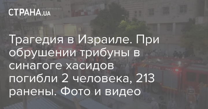 В Израиле, в городе Гиват-Зеев вчера, 16 мая, произошла страшная трагедия. Здесь обрушились трибуны в городской синагоге хасидов. Два человека погибли (мужчина 40 лет и 12-летний ребенок - Ред.), а общее число пострадавших по состоянию на утро 17 мая, достигло отметки в 213 человек.