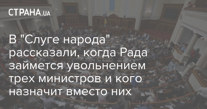 Председатель фракции "Слуга народа" Давид Арахамия заявил, что Верховная Рада проведет заседание, где будут голосовать за увольнение трёх министров Кабмина состоится во вторник, 18 мая, а по назначениям новых - в четверг, 19 мая.