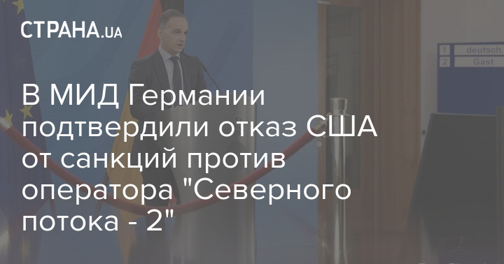 Министр иностранных дел Германии Хайко Маас подтвердил, что США откажутся от санкций против компании-оператора "Северного потока - 2" и против главы этой компании Матиаса Варнига.