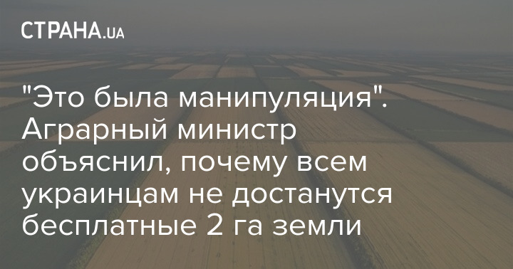Министр аграрной политики Роман Лещенко считает, что норма украинского законодательства, согласно которому каждый гражданин имеет право на два гектара земли, является "манипуляцией" и потому рассчитывать на получение бесплатной земли украинцам не стоит.