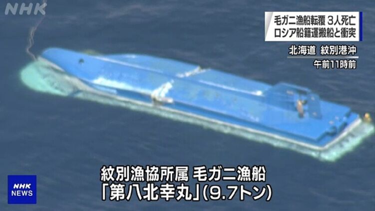 Японское судно перевернулось и затонуло, фото nhk.or.jp