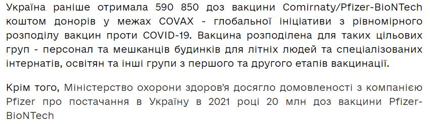 Скриншот из новости на сайте vaccination.covid19.gov.ua