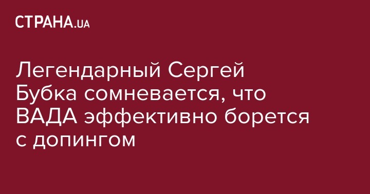 Член исполкома Международного олимпийского комитета (МОК) и глава Национального олимпийского комитета Украины Сергей Бубка указал на неэффективность и сомнительность Всемирного антидопингового агентства (ВАДА). По данным Бубки, функции борьбы с допингом, причем гораздо эффективнее ВАДА, выполняют журналисты и информаторы и правоохранители, сообщает "Спорт-Экспресс".