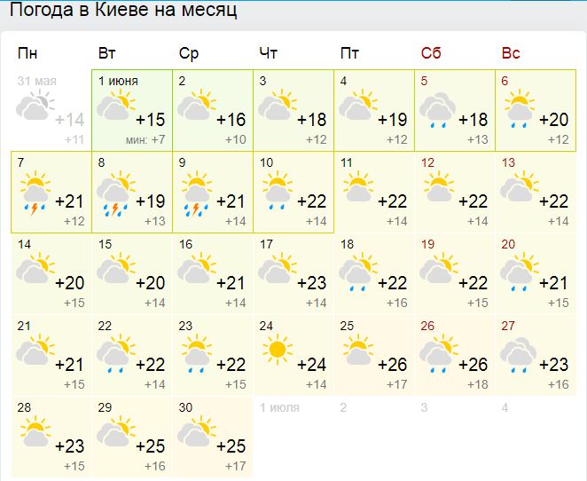 Прогноз погоды в Киеве в июне