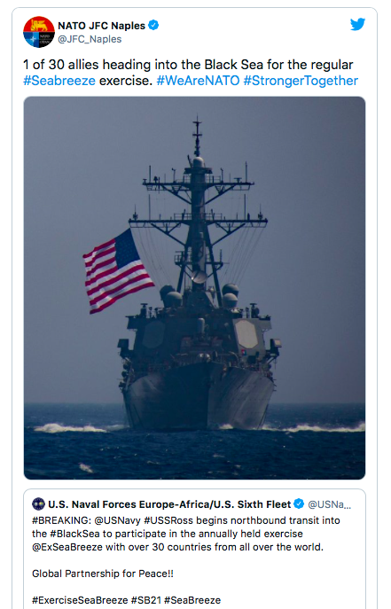 Каждое вхождение боевых кораблей в Черное море приветствуется в твиттере НАТО.