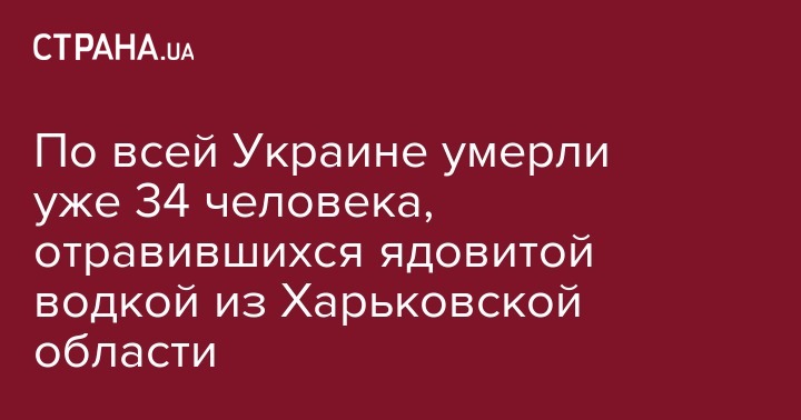 Ранее сообщалось, что от отравления паленой водкой умерли уже больше трех десятков человек в трех областях Украины. Известно, что прокуратура Харьковской области уже нашла изготовителя смертельной водки.