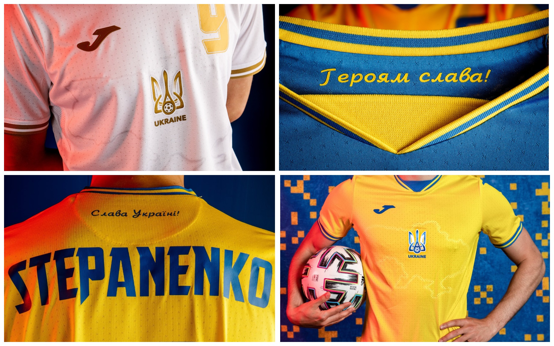 На официальном сайте Joma представлена экипировка сборной Украины без контуров карты и лозунга.