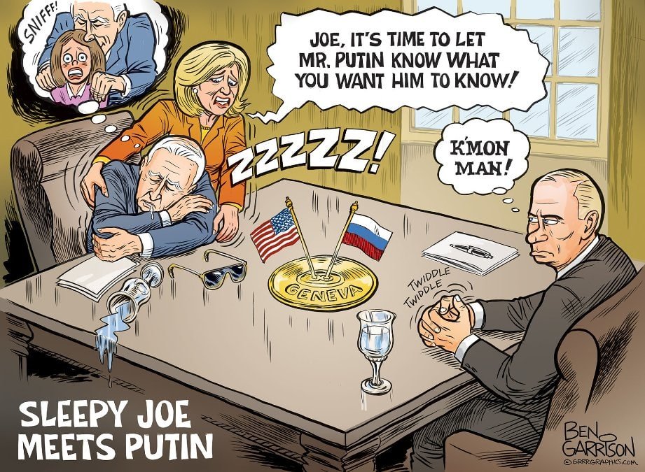 Американский карикатурист Бен Гаррисон изобразил за столом переговоров "Sleepy Joe" - "сонного Джо".