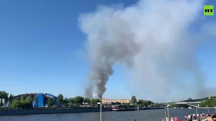 В субботу, 19 июня, в центре Москве на Лужнецкой набережной загорелся склад, на котором хранится пиротехника. Огонь перекинулся на соседнее здание, площадь пожара достигла 150 квадратных метров.
