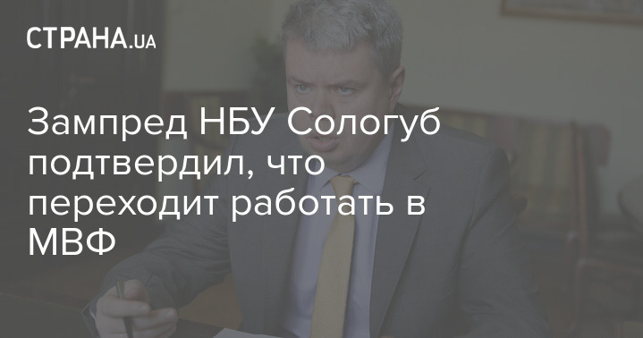 Заместитель главы Национального банка Дмитрий Сологуб подтвердил информацию недельной давности о том, что переходит работать в Международный валютный фонд. Он станет сотрудником вашингтонского офиса организации.