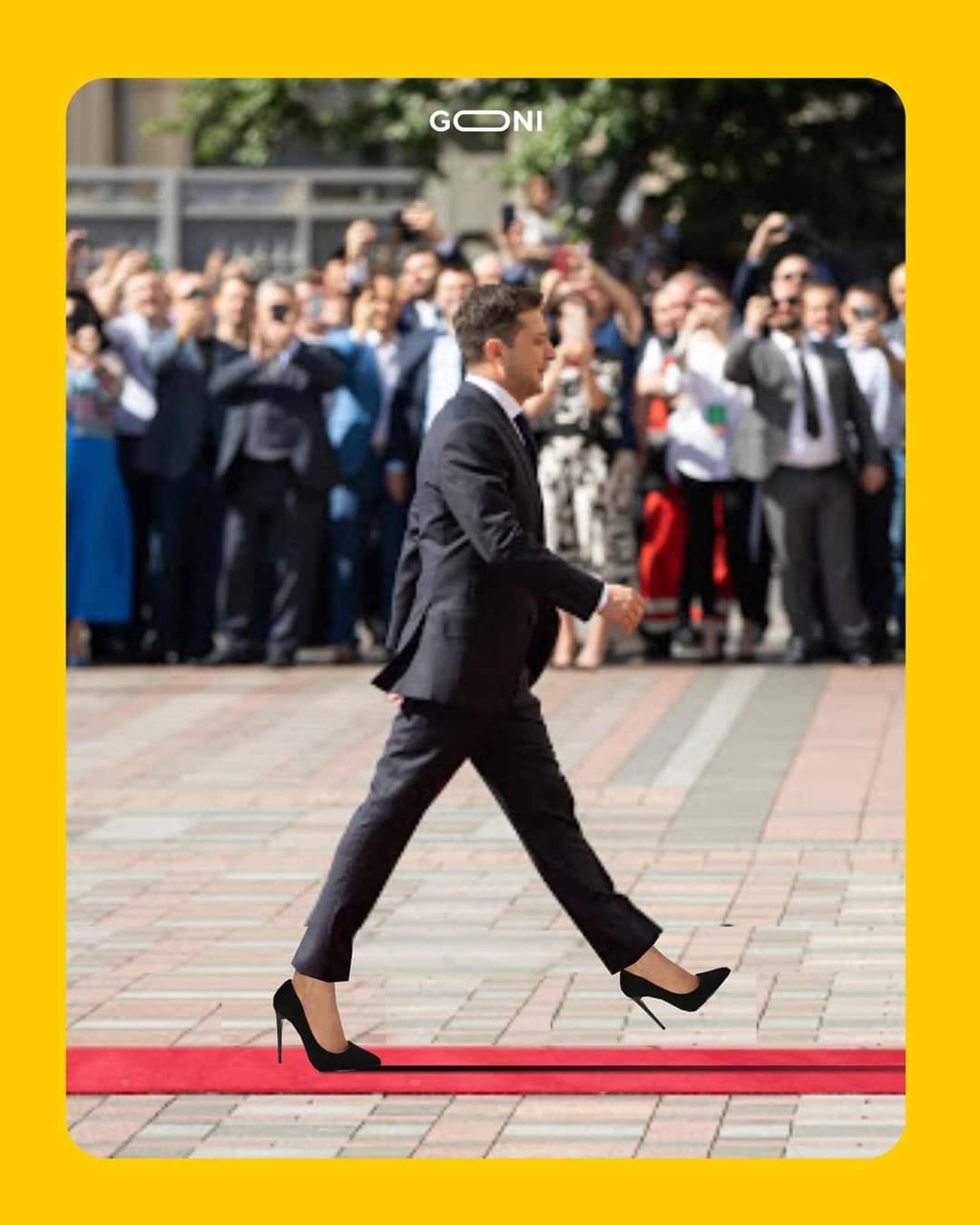 Тема женщин на каблуках на параде также вызвала волну мемов. На каблуках даже представили главнокомандующего - президента Владимира Зеленского.