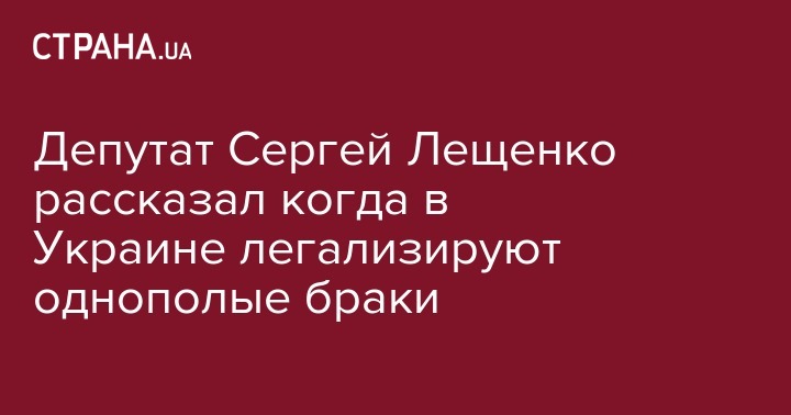 Депутад Верховной Рады от БПП Сергей Лещенко считает, что следующий созыв парламента примет закон о легализации в Украине однополых браков. Об этом он рассказал в интервью "Reed".