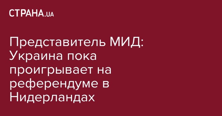 Украина пока проигрывает на референдуме об Ассоциации с ЕС, который запланирован на 6 апреля в Нидерландах. Об этом 6 марта в эфире hromadske.tv заявил посол по особым поручениям МИД Украины Дмитрий Кулеба.