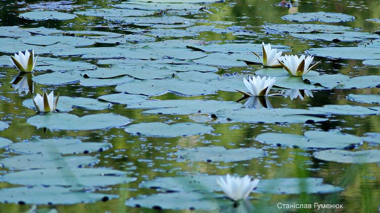 В Чернобыльском радиационно-экологическом биосферном заповеднике зацвели белые кувшинки и выросли водяные линии. Кувшинки предпочитают стоячие водоемы или водоемы с медленным течением.