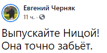 "Выпускайте Ницой! Она точно забьёт", - призвал предприниматель Евгений Черняк.