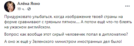 А оно ж ещё у Зеленского министром иностранных дел было!", - пишет блогерша Алена Яхно.