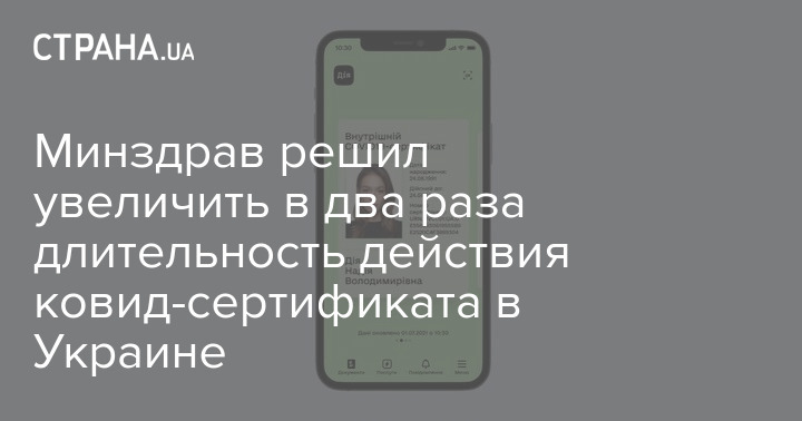 Украинские ковидные сертификаты о вакцинации будут действительны на протяжении 12 месяцев, а не 180 дней, как ранее сообщали в министерстве здравоохранения. Если человек переболел Covid-19, документ подтверждающий это будет действовать 6 месяцев.