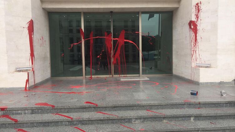 Основательница движения "Дроа", оппозиционерка Елена Хоштария облила красной краской стены, двери и холл в администрации грузинского правительства, обвинив его в безответственности из-за смерти оператора телеканала "ТВ Пирвели".