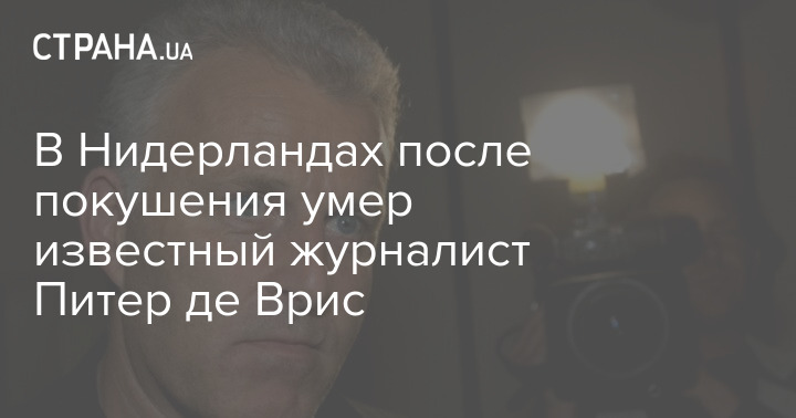 Нидерландский журналист Питер де Врис, на которого совершили покушение в Амстердаме, скончался в больнице от полученных ранений.