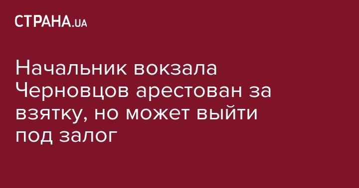 Начальнику вокзала "Станция Черновцы", которого задержали накануне после получения 12 тыс. грн. взятки, решением суда арестован и помещен под стражу.