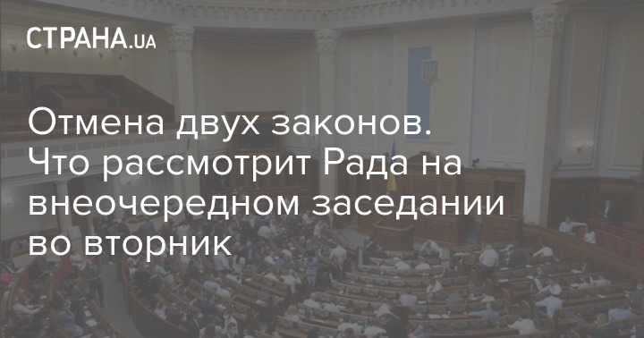 Во вторник, 20 июля, Верховная Рада соберется на внеочередное заседание, на котором рассмотрит отмену двух законов.