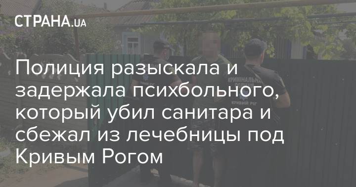 Полицейские во вторник, 20 июля, задержали психбольного, которого подозревают в убийстве санитара психиатрической больницы и который сбежал из лечебницы под Кривым Рогом после совершения преступления