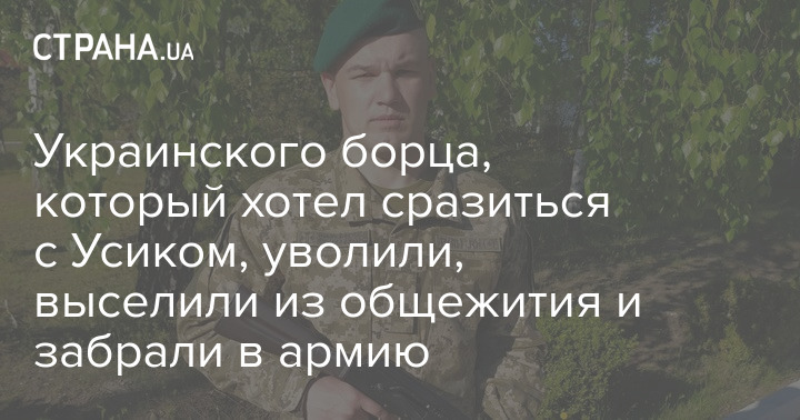 Украинского бойца вольного стиля Богдана Грицай, который в прошлом году вызывал на бой без правил боксера Александра Усика, выселили из общежития, уволили с работы и забрали в армию.