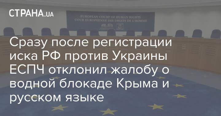 Европейский суд по правам человека (ЕСПЧ) зарегистрировал иск Российской Федерации против Украины. Однако сразу же отказал Москве по поводу запроса о Правиле 39, который касается водной блокады Крыма и нарушения прав русскоязычных граждан.