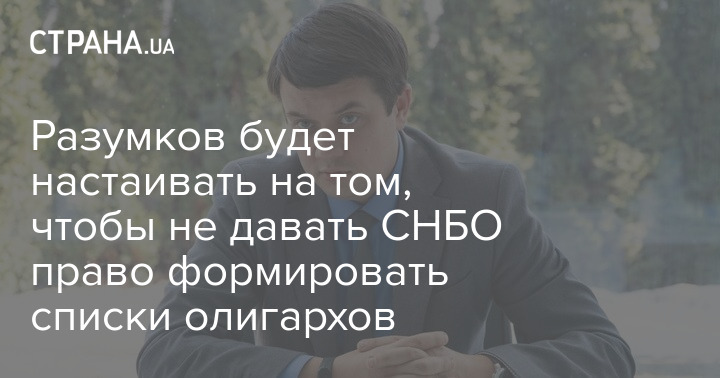 Председатель Верховной Рады Дмитрий Разумков в интервью "Стране" подтвердил, что является противником идеи предоставления права Совету нацбезопасности и обороны формировать списки олигархов. Он будет настаивать на внесение своей правки в закон об олигархах, по которой определение этого статуса возлагается на специально созданную комиссию.