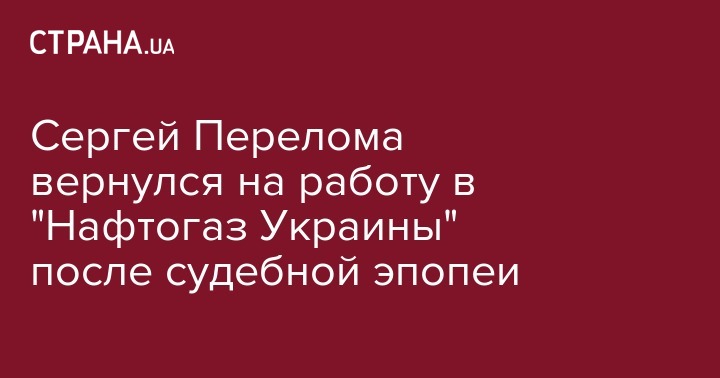 Первый заместитель председателя правления НАК "Нафтогаз Украины" Сергей Перелома вернулся к исполнению своих служебных обязанностей. Об этом сообщает пресс-служба государственного холдинга.