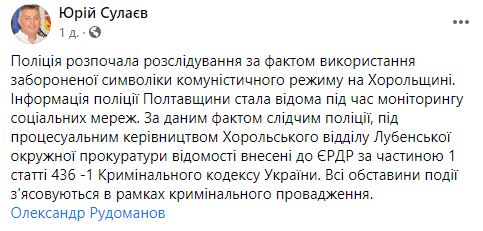 На следующий день начальник отделения коммуникации Нацполиции в Полтавской области сообщил, что начато расследование. Нашли "крамольные" фото во время мониторинга соцсетей.