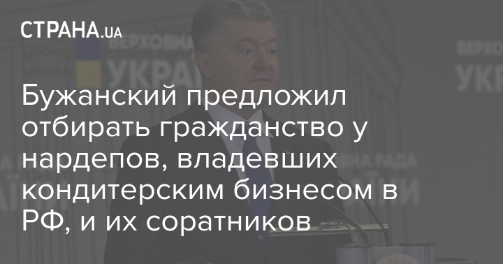 "Автоматическая утрата гражданства Украины в случаях, определенных настоящей статьей, предусматривает потерю гражданства Украины без издания соответствующего указа Президента Украины.  Датой прекращения гражданства Украины в случаях, предусмотренных настоящей статьей, является дата написания заявления о вступлении в депутатскую фракцию (группы), членом которой является лицо, которое в период 2014-2017 годов прямо или косвенно владела кондитерским(и) предприятием(ями) на территории Российской Федерации", - говорится в законопроекте Бужанского.