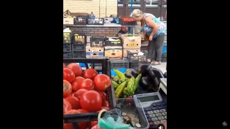 На одном из рынков Запорожья продавщица овощей освежала свой товар, опрыскивая его водой изо рта.