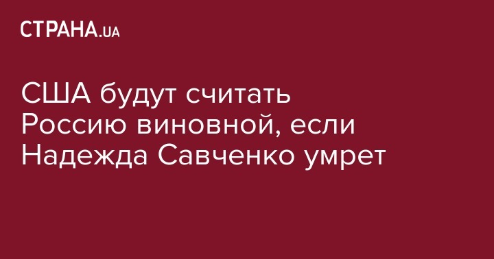 США будут считать Россию виновной, если Надежда Савченко умрет