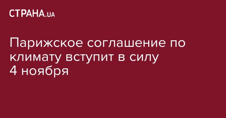 Соглашение по климату вступит в силу 4 ноября 2016 года. Это стало возможным, после того как его ратифицировали в Германии и Франции, а также в сентябре к нему присоединились США и Китай.