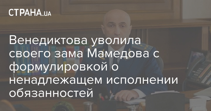 Генпрокурор Ирина Венедиктова 5 августа уволила своего заместителя Гюндуза Мамедова. Несмотря на то, что он еще в июле написал заявление об уходе по собственному желанию, в итоге его освободили от должности с формулировкой о том, что он не исполнял свои обязанности надлежащим образом.