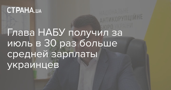 Глава Национального антикоррупционного бюро (НАБУ) Артем Сытник за июль текущего года получил 436 666 гривен, что в 30 раз больше средней зарплаты украинцев, которая составляет 14 313 грн.