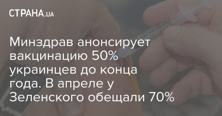 Минздрав анонсирует вакцинацию 50% украинцев до конца года. В апреле у Зеленского обещали 70%