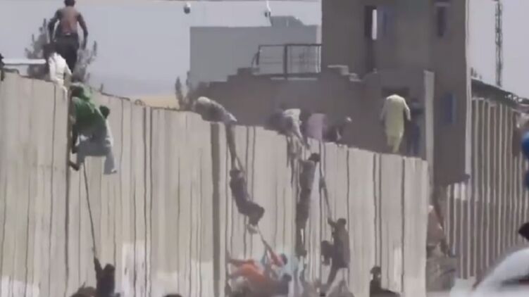 Люди пытаются сбежать из Афганистана. Кадр с видео