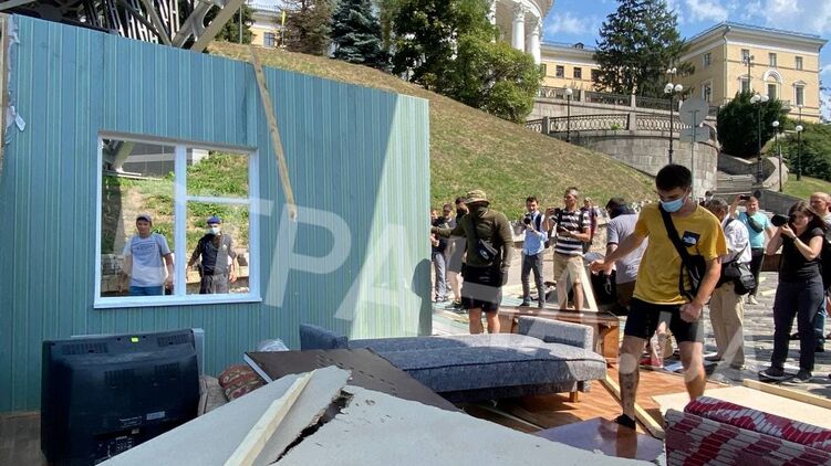 Националисты рушат инсталляцию на Аллее Героев Небесной Сотни. Фото: "Страна"