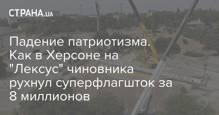 В Херсоне высота флагштока составляла 70 метров. Но до праздника он не достоял несколько дней. 20 августа при монтаже конструкция неожиданно рухнула, повредив припаркованный рядом автомобиль Lexus. Ему проломило крышу.