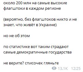 "Около 200 млн на самые высокие флагштоки в каждом регионе (вероятно, без флагштоков никто и не знает, что живет в Украине), но не об этом.