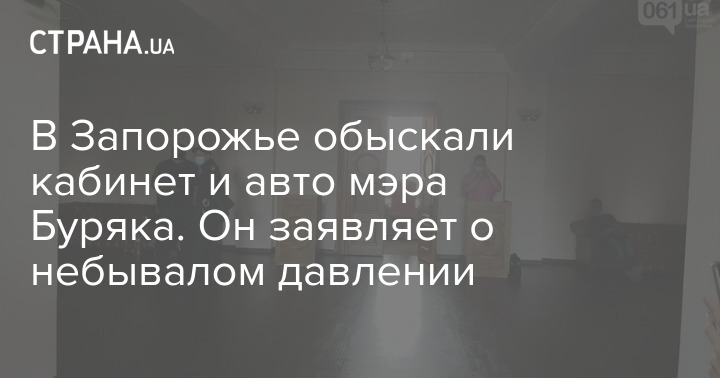 Правоохранители провели обыск в кабинете и в автомобиле мэра Запорожья Владимира Буряка, а также у двоих его советников.  Следователи следственного управления ГУНП в Запорожской области и сотрудники Управления стратегических расследований, а также облпрокуратуры нагрянули в горсовет в четверг, 19 августа. Следственные действия ведутся в рамках уголовного производства по ст. 191 (присвоение, растрата имущества или завладение им путем злоупотребления служебным положением) Уголовного кодекса Украины. Санкция статьи предусматривает до 12 лет лишения свободы.