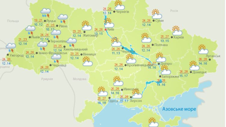 Прогноз погоды в Украине на 23 августа. Фото: meteo.gov.ua