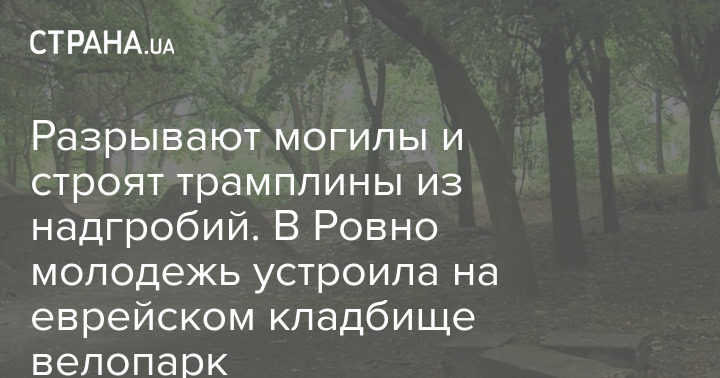В Ровно на старом еврейском кладбище молодежь устроила велопарк: землю разрывают ради постройки трамплинов, а укрепляют их надгробиями.