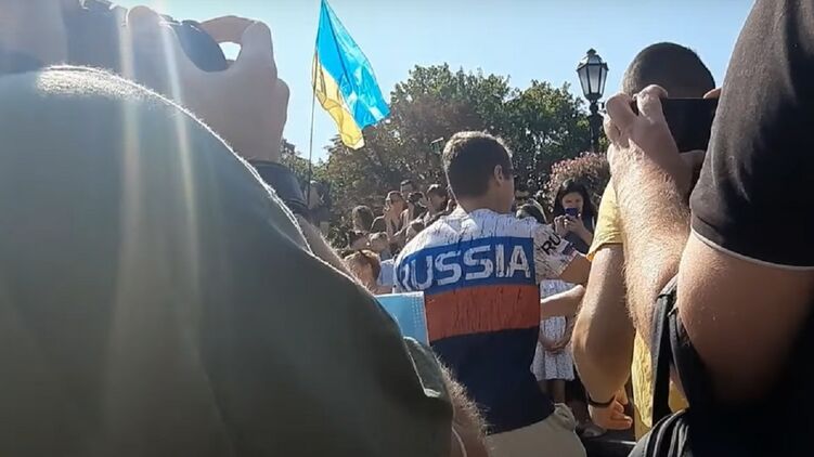 Напомним, в понедельник, 23 августа в Одессе американец вышел на улицу в футболке цветов российского триколора и с надписью "Russia". После чего возник скандал и парня забрала полиция.